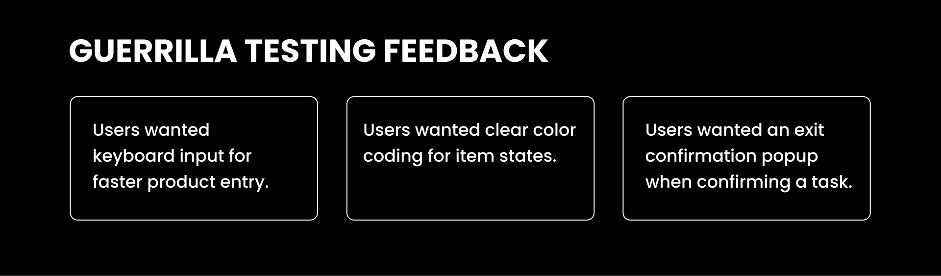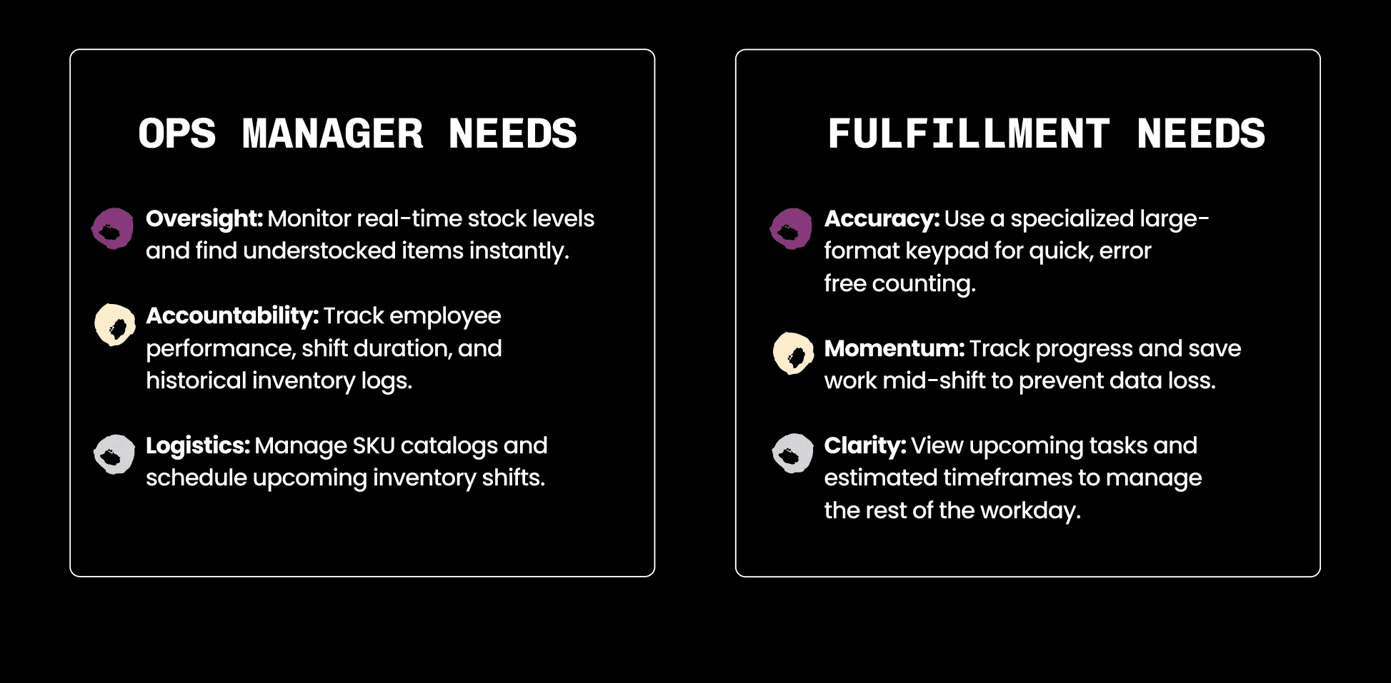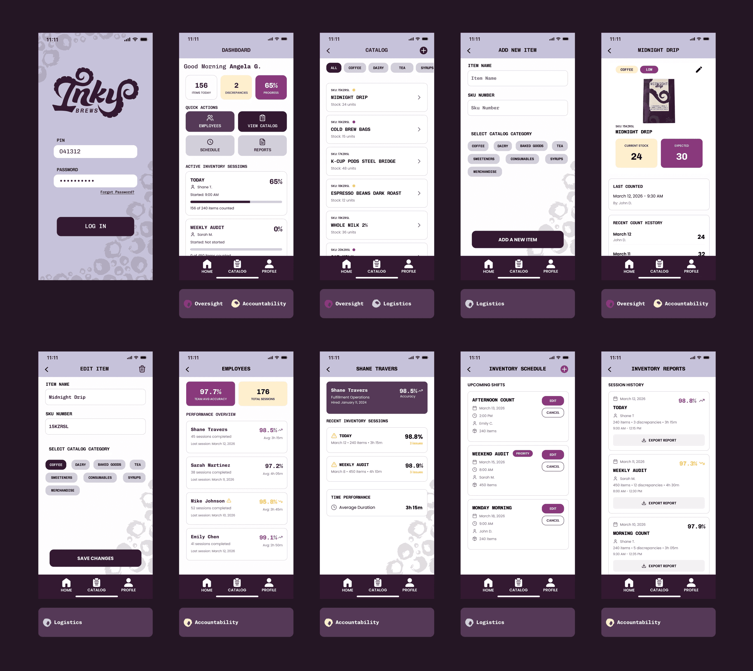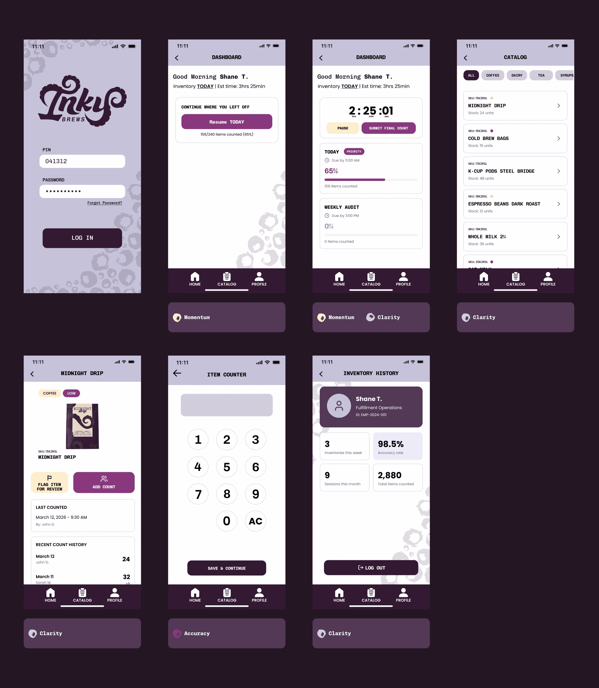 Fulfillment Final Screens - The screens show the final flow for the inventory takers. They are marked showing which screens help the initial user needs.